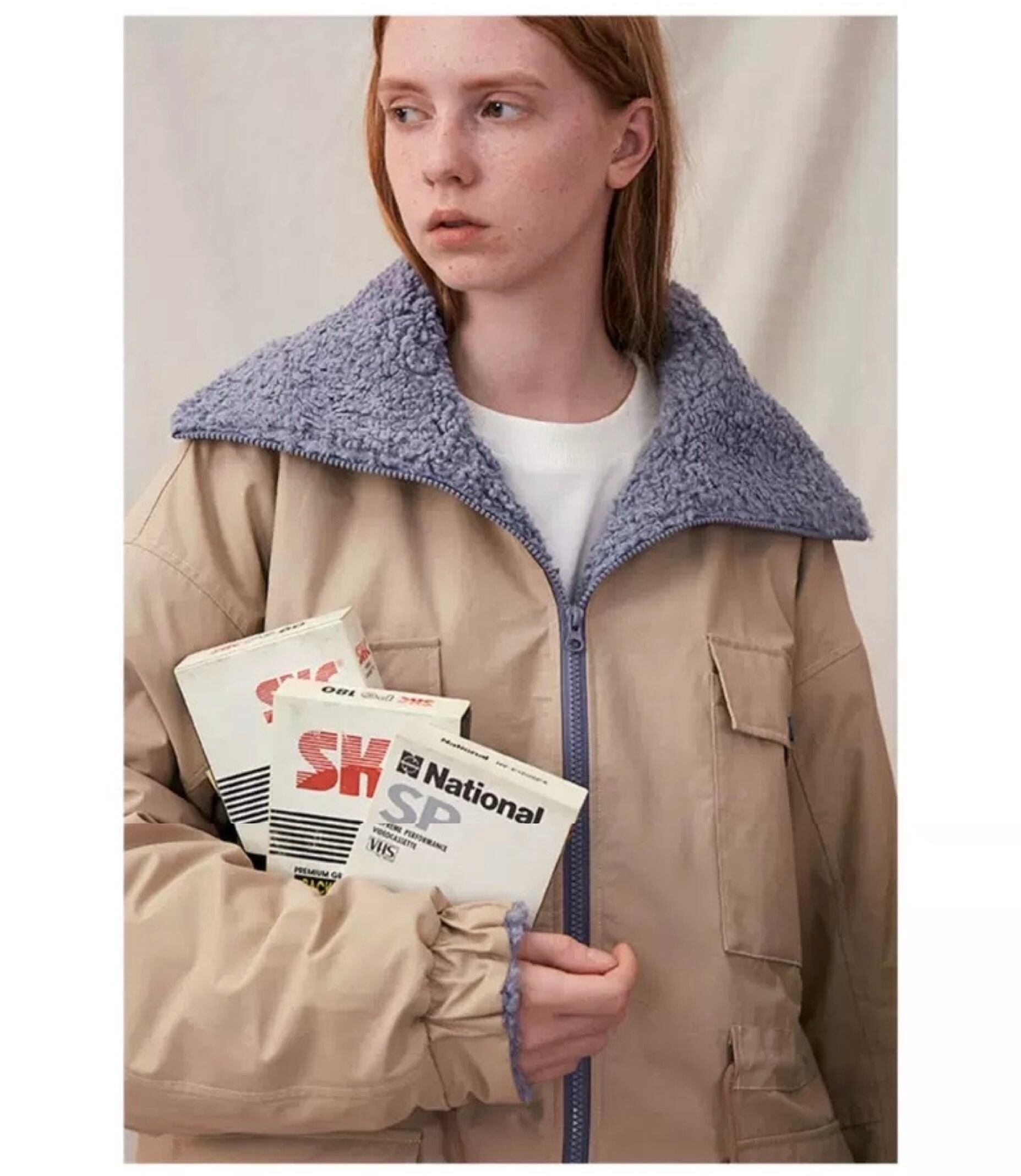 【TWT00018】Light purple&light khaki 2-side fleece unisex jacket